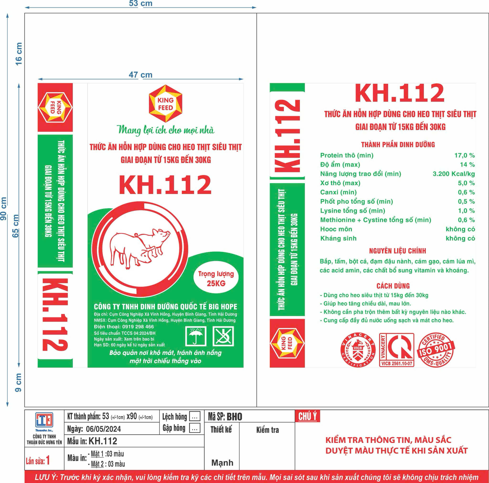 KH112 Thức Ăn Hỗn Hợp Dùng Cho Heo Thịt Siêu Thịt Giai Đoạn Từ 15Kg Đến 30 Kg