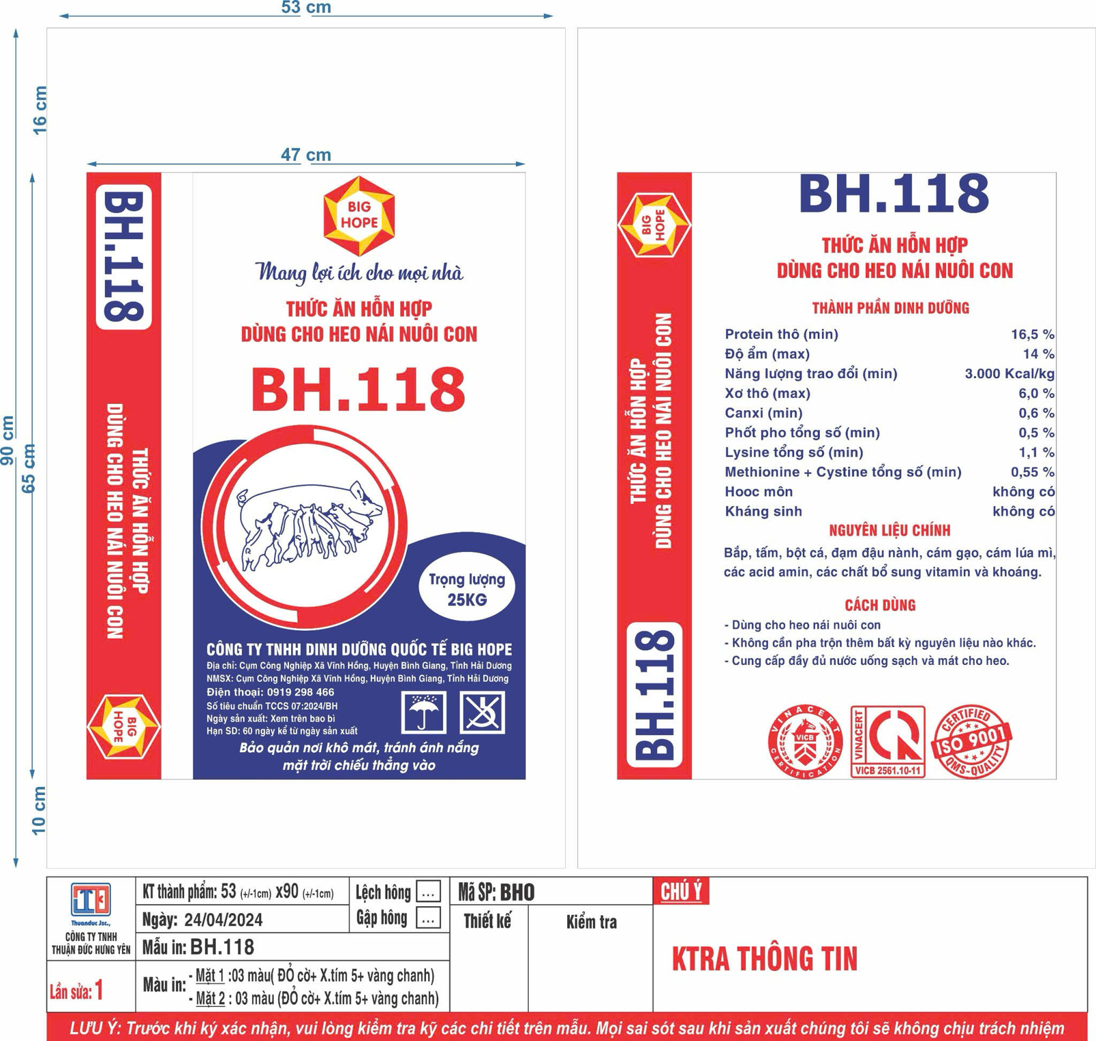 KH118 Thức Ăn Hỗn Hợp Dùng Cho Heo Nái Nuôi Con